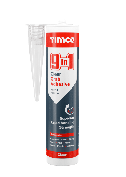 TIMCO 9 in 1 Instant Grab Adhesive has been developed to give superior rapid bonding strength to all building materials, even in wet conditions.
