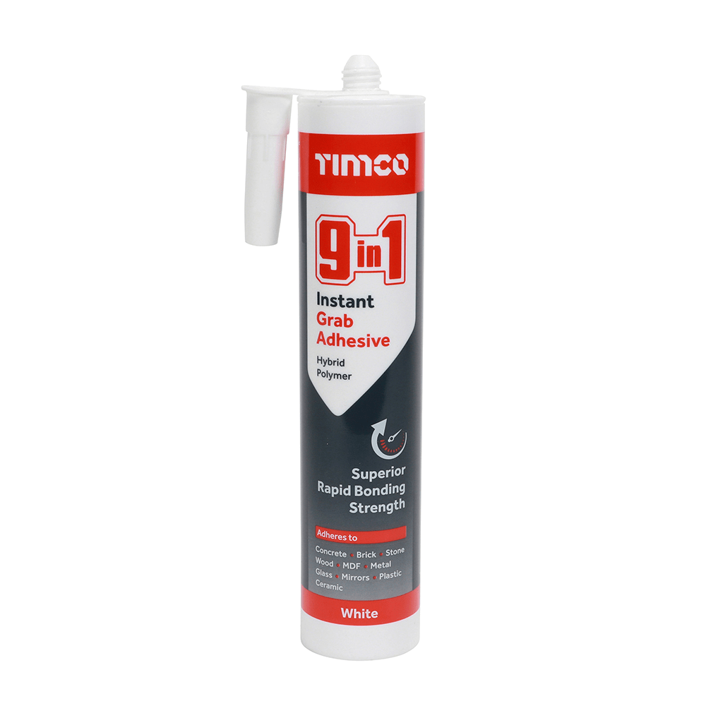 TIMCO 9 in 1 Instant Grab Adhesive has been developed to give superior rapid bonding strength to all building materials, even in wet conditions.